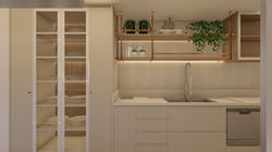 A mescla e junção dos materiais naturais (e rústicos) junto a madeira e tons claros proporcionou um projeto de interiores leve, atemporal e que propusesse amplitude ao apartamento. E o layout integrativo traz para perto a convivência entre família e amigos, um lugar aberto que abraça a todos.